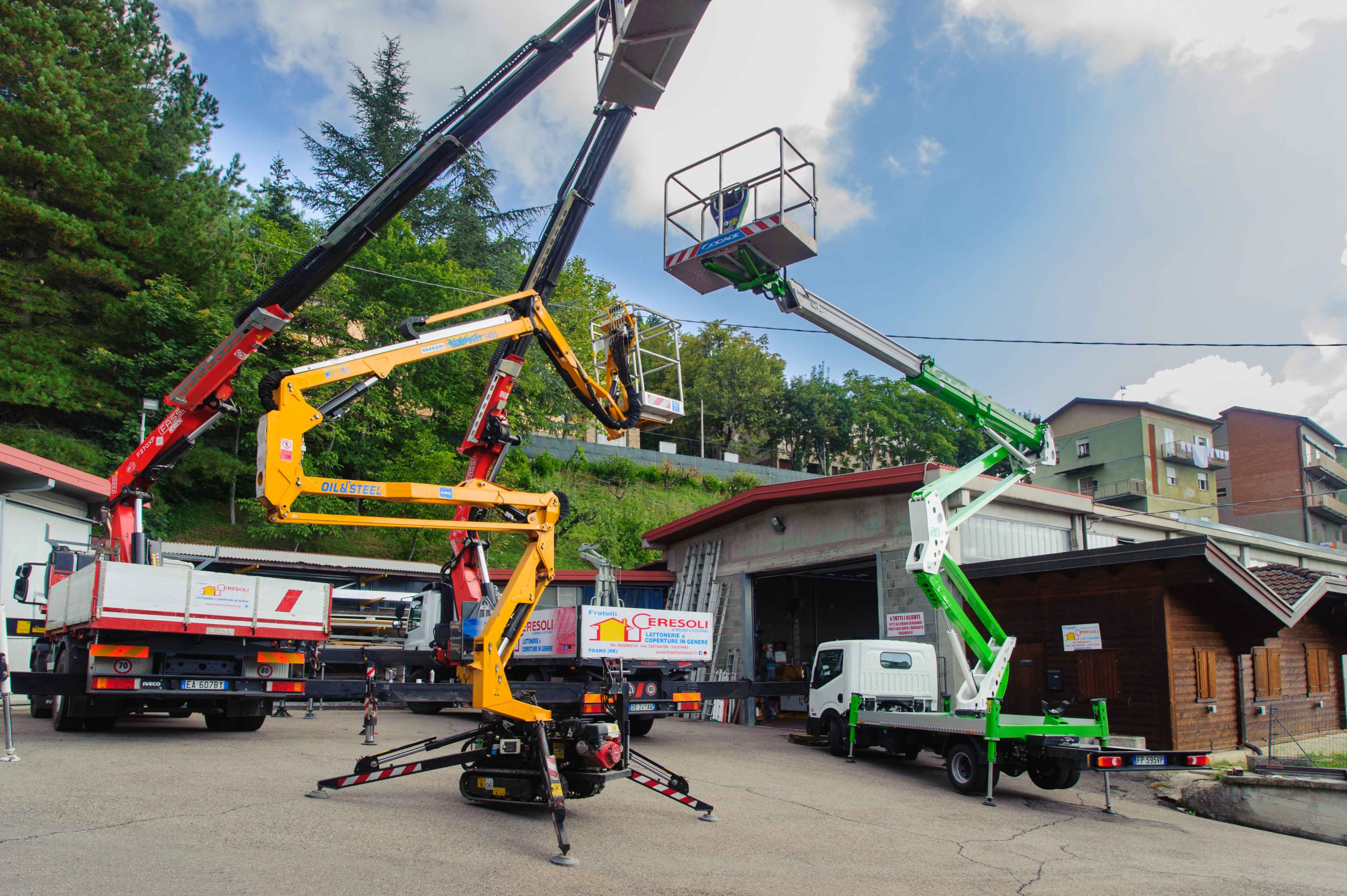 disponiamo di piattaforme aeree e camion gru che ci permettono di lavorare agevolmente e al massimo della sicurezza sia nelle costruzioni civili che industriali.